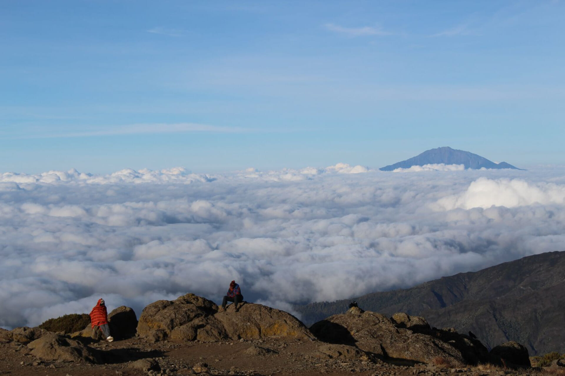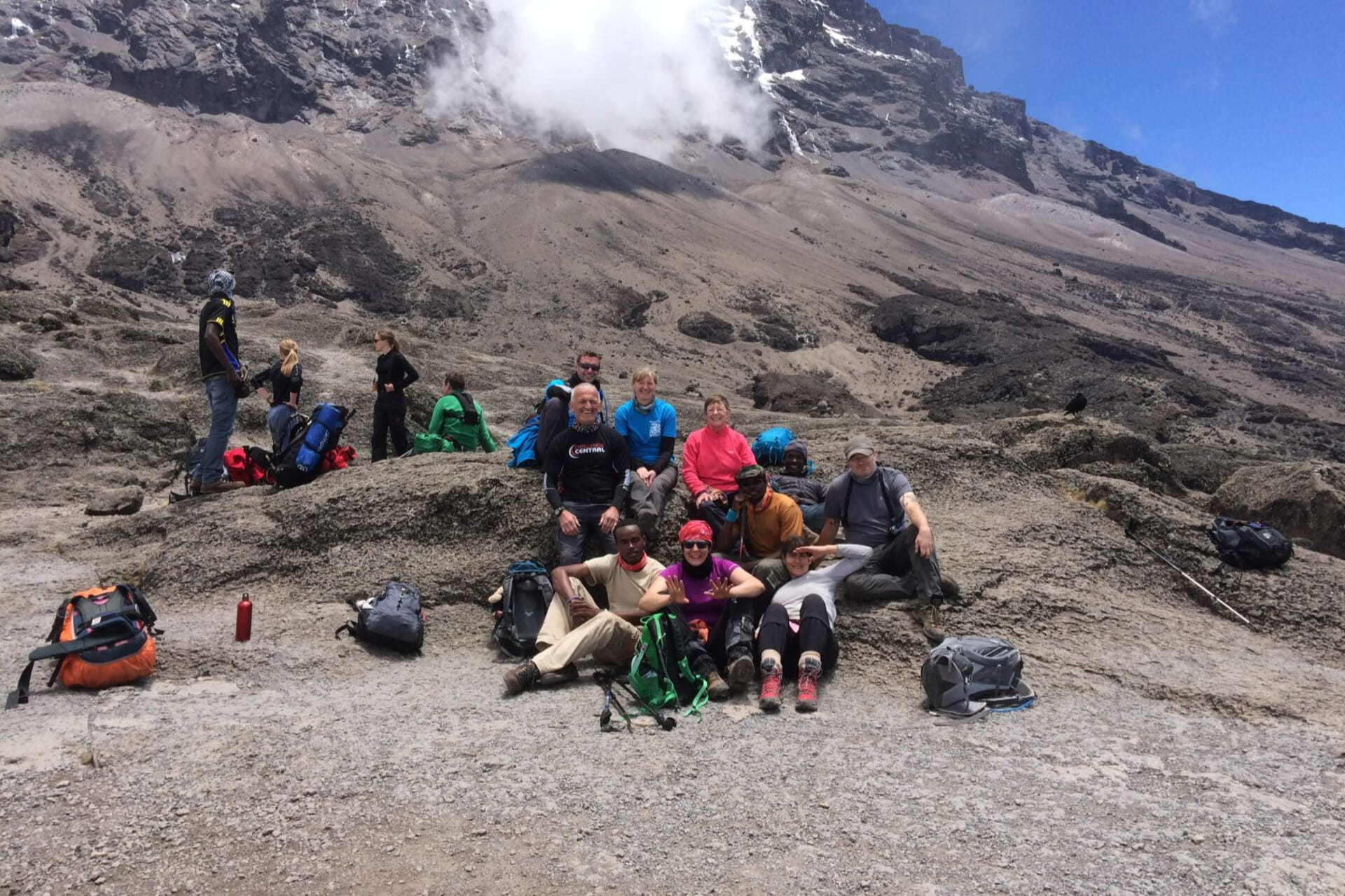On clear days, spectacular views of the summit appear ahead before you arrive at Shira Cave for rest and recovery.