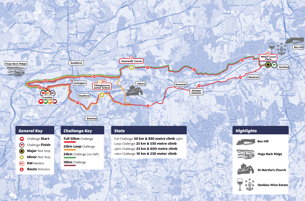 You’ll get full support all the way so you can set a new goal, conquer the first half of the stunning North Downs 50 route and push yourself over 25km for an important cause. If you’re up for a charity challenge this year, make it the North Downs 50 Ultra Challenge®.