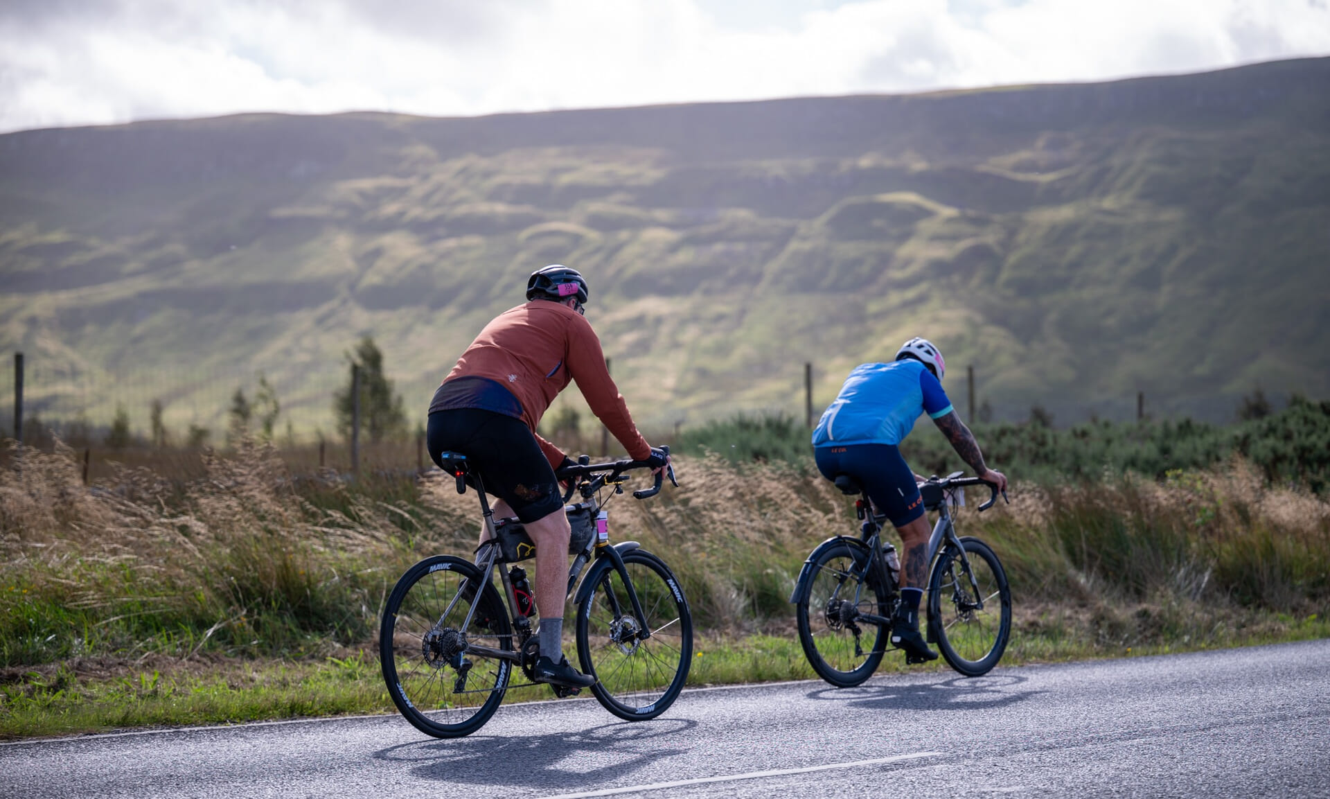 Road bikes, hybrid bikes, e-bikes or tandems would be ideal. Other roadworthy bikes such as mountain or gravel bikes are allowed.