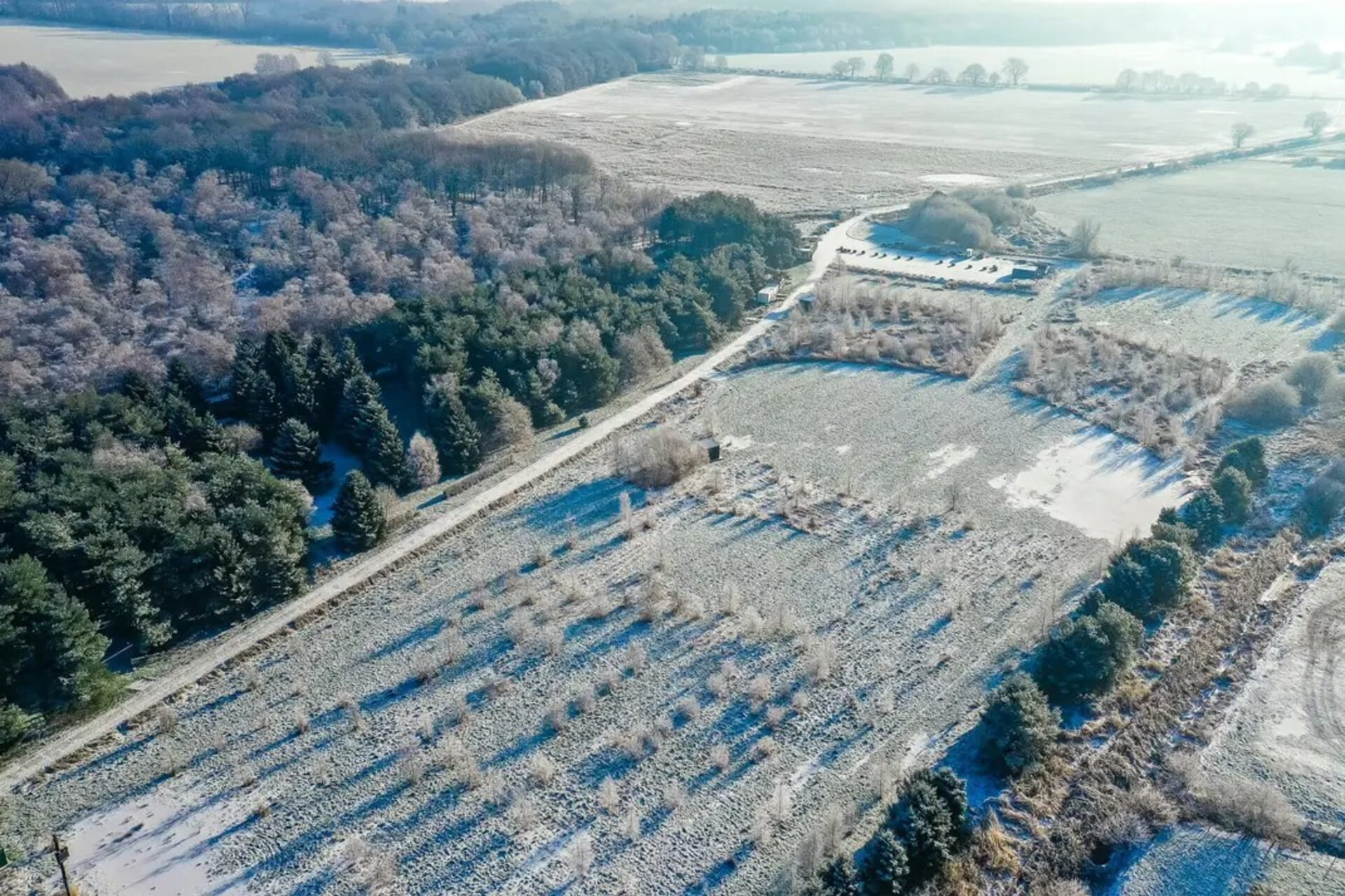 Flat, fully off road trail course, starting across field ground before flowing into shaded woodland trails, offering fast, runnable terrain throughout.