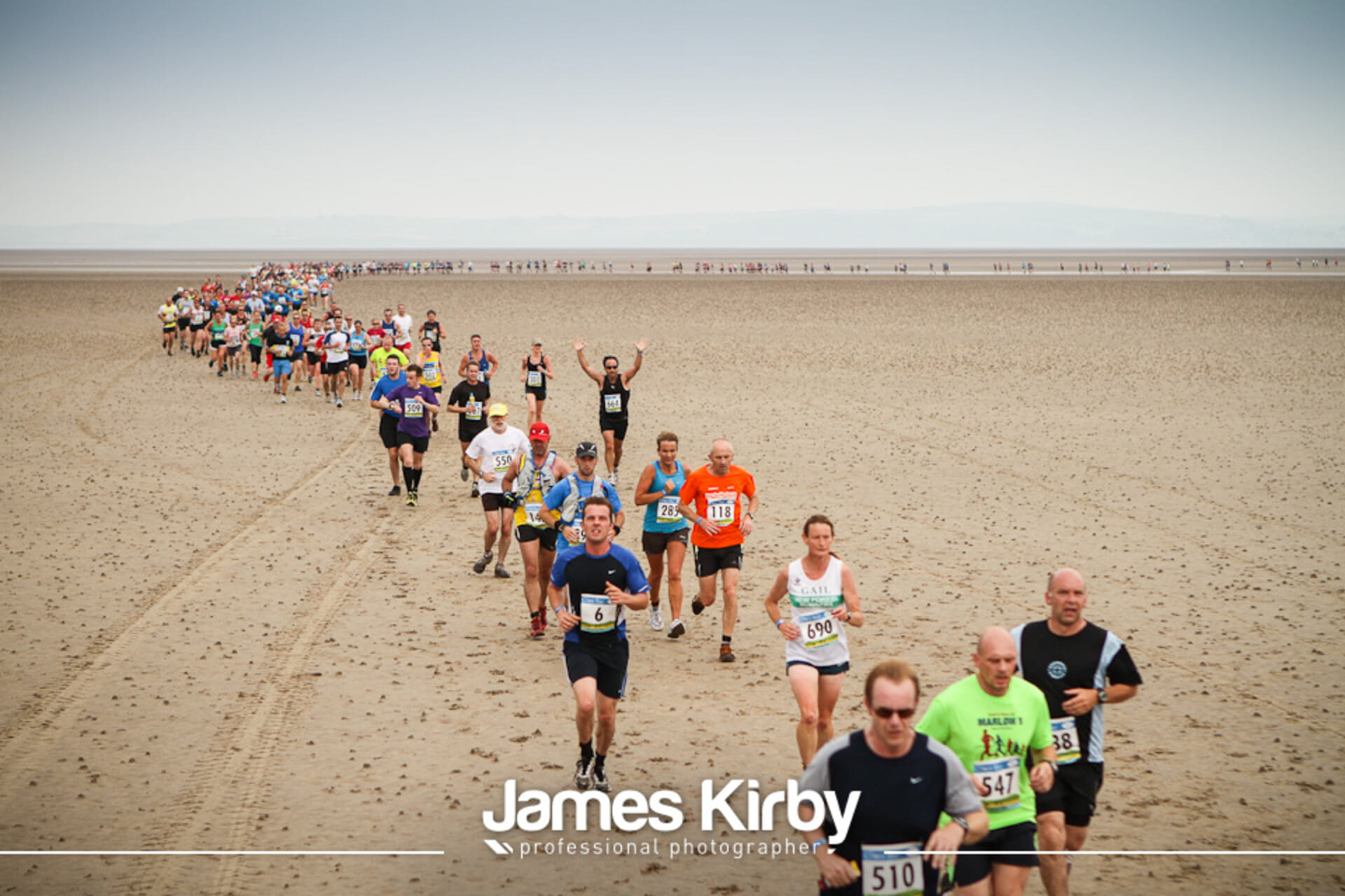 The only half marathon in the world that crosses a tidal bay! Rare chance to run across the iconic sands of Morecambe Bay guided safely by two experts in tractors at the front and back of the field.